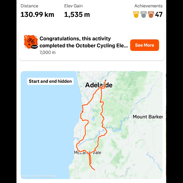 Monday 27th Oct 3 rides this week totalling 195km and 700km for the month of October.